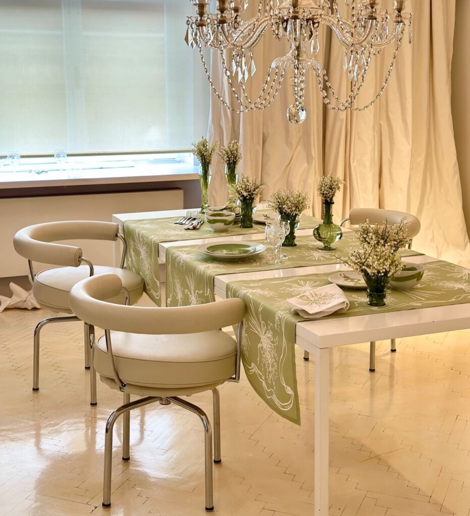 Poseban fokus stavljen je na izbor materijala i načina bojanja kako bi se vjerno prenio umjetnički potez Saše Šekoranje i zadovoljili visoki Merlini standardi.  Šekoranjina inspirativna umjetnička vizija i Merlina stručnosti u izradi vrhunskog damasta rezultirao je kolekcijom koja predmete za kućanstvo transformira u pravo umjetničko djelo.